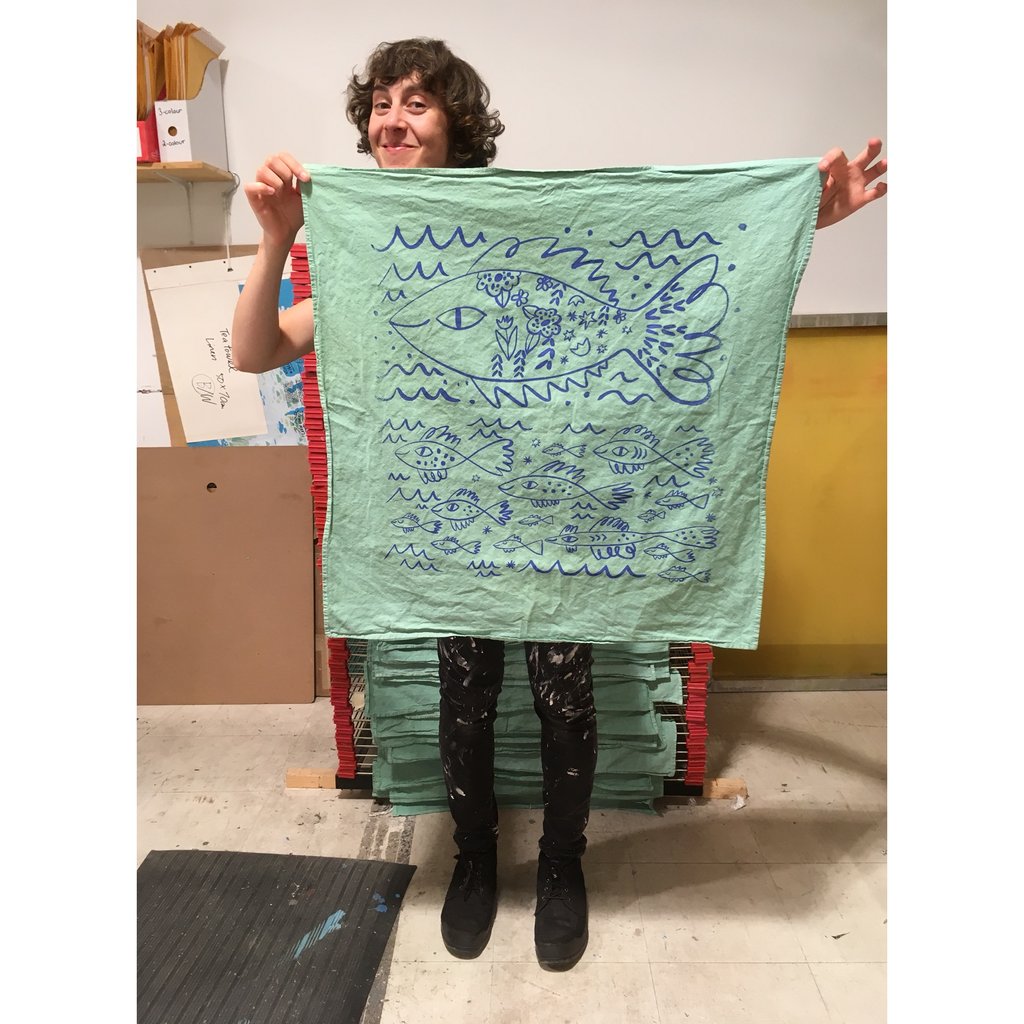 I had been itching to revisit my art school days and make some silkscreens. So I did! I made a batch of silkscreened tea towels for Draw Me A Lion and they came out soooo fun! I definitely am looking forward to creating more work specifically for fabric!
