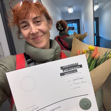 The mountain of work and long hours of reading have paid off! (I actually developed an eye twitch at some point!) So happy and proud to say that I recently completed the post graduate diploma program at the Vancouver Art Therapy Institute (VATI) and am now officially an Art Therapist!